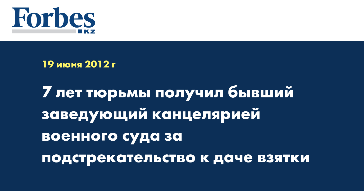 Бывший заведующий канцелярией военного суда в Актобе за подстрекательство к даче взятки в крупном размере приговорен к 7 годам лишения свободы, сообщили в департаменте по борьбе с экономической и коррупционной преступностью (ДБЭКП, финполиция) по Актюбинской области, передает КазТАГ.