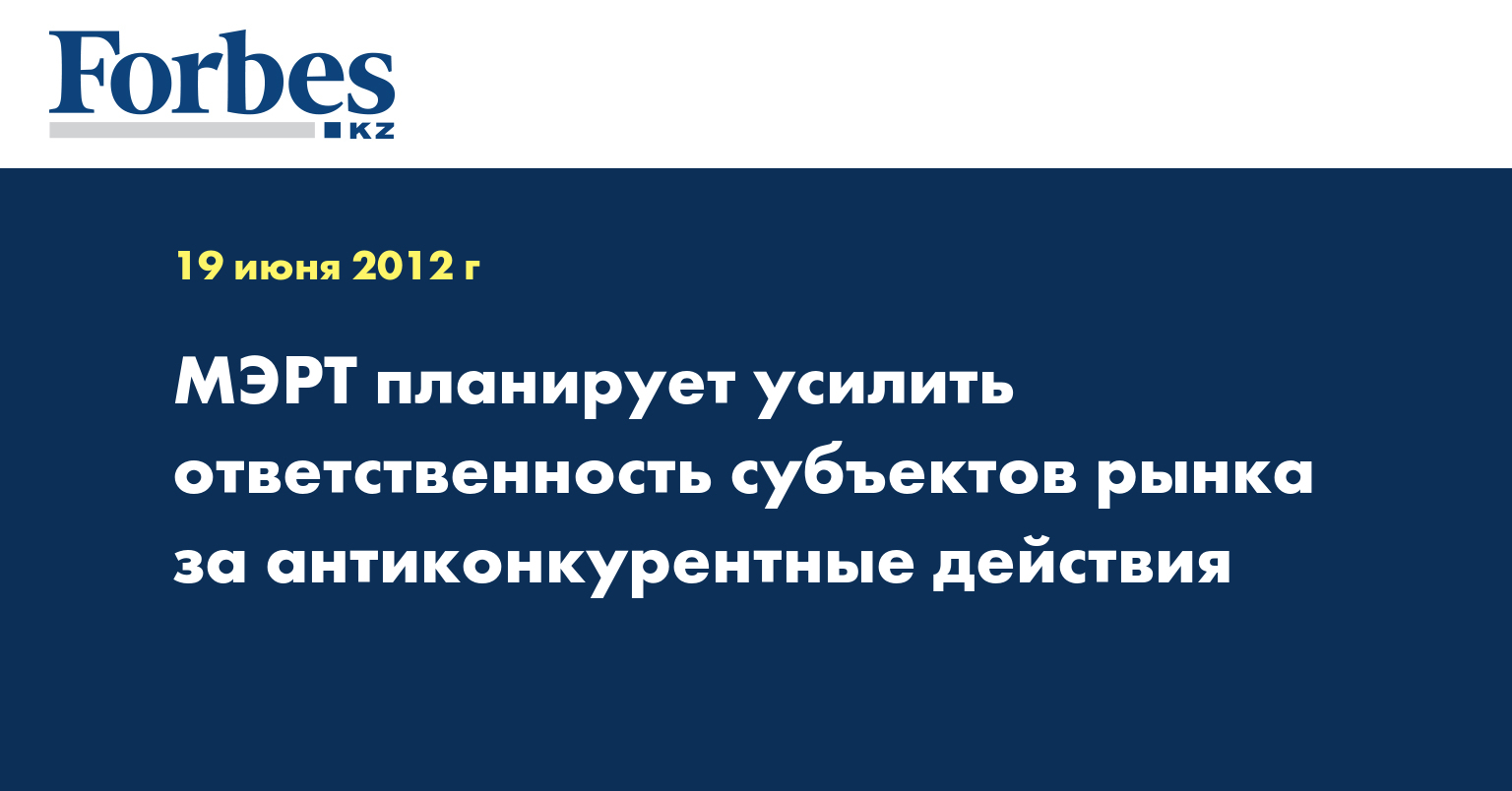 Министерство экономического развития и торговли (МЭРТ) планирует усилить ответственность субъектов рынка за антиконкурентные действия, сообщает КазТАГ.