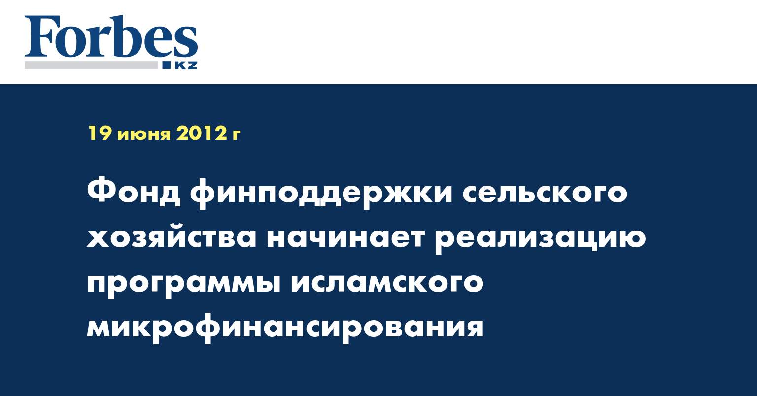 «В 2012 году фонд планирует начать программу исламского микрофинансирования. программа осуществляется совместно с Исламским банком развития», - указывается в информации, распространенной во вторник, передает КазТАГ.