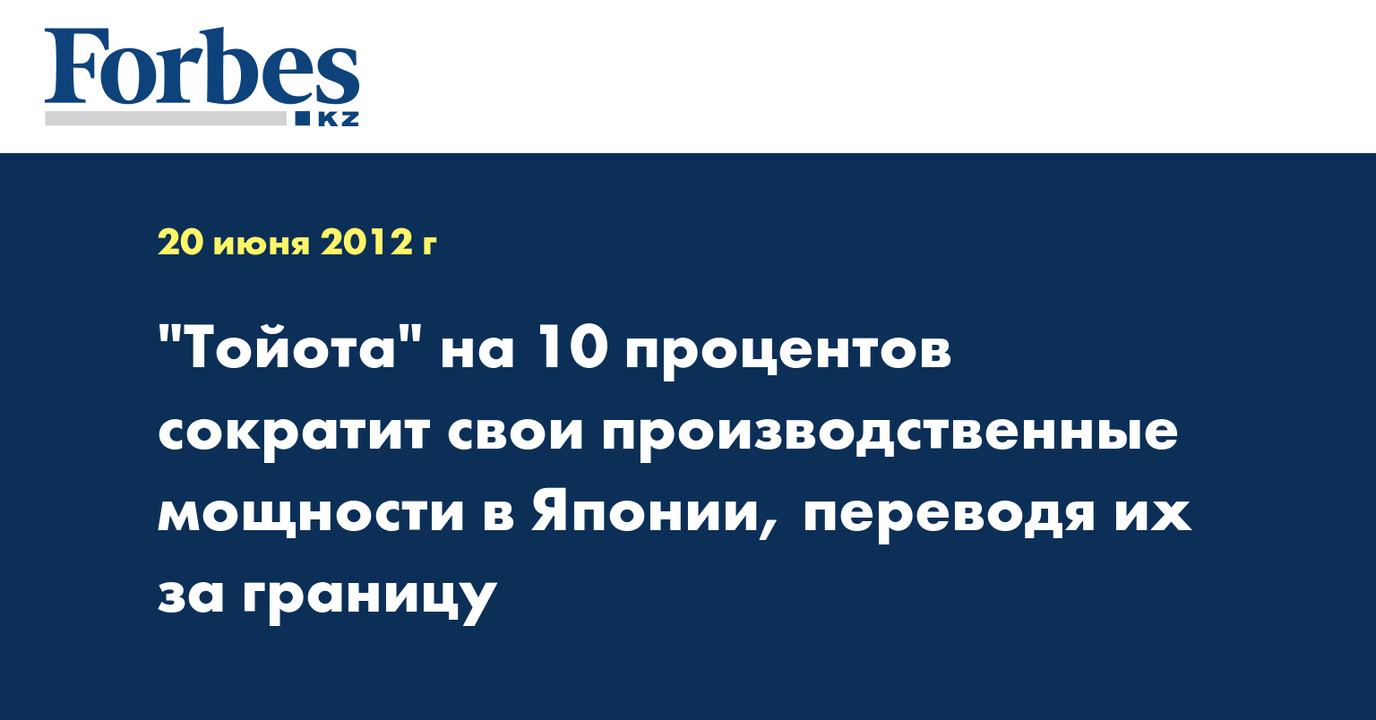 До глобального финансового кризиса 2008 года "Тойота" выпускала на своих заводах в Японии более 3,9 млн автомобилей. Однако после этого она последовательно переводила производство за границу. Высокий курс иены подрывает конкурентоспособность японских товаров, повышает издержки производства внутри страны при пересчете в иностранные валюты.