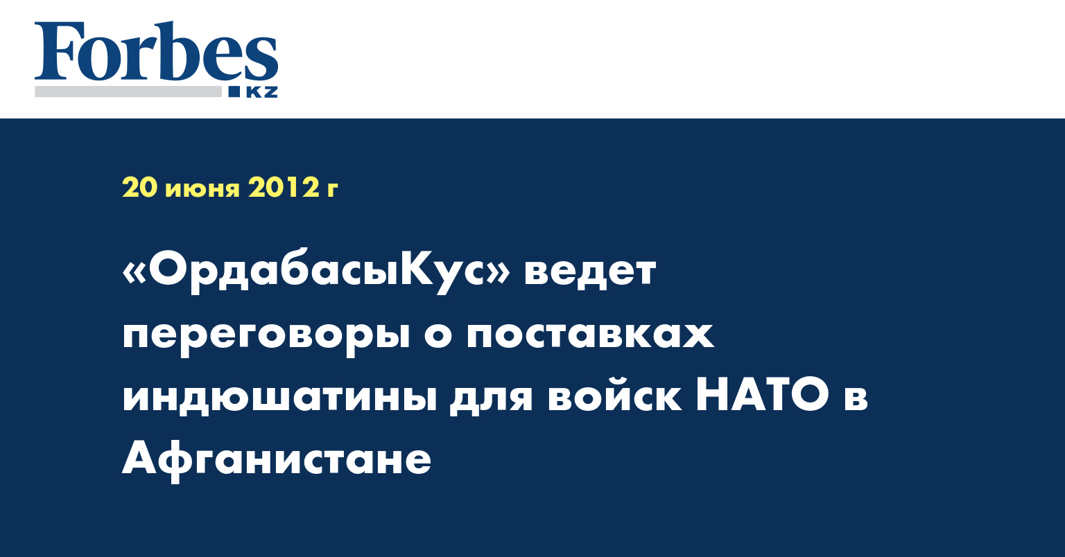 ТОО «ОрдабасыКус», имеющая индюшиную птицефабрику в с. Бадам Ордабасинского района Южно-Казахстанской области, ведет переговоры о поставках мяса для войск НАТО в Афганистане, сообщила пресс-служба АО «КазАгроФинанс».