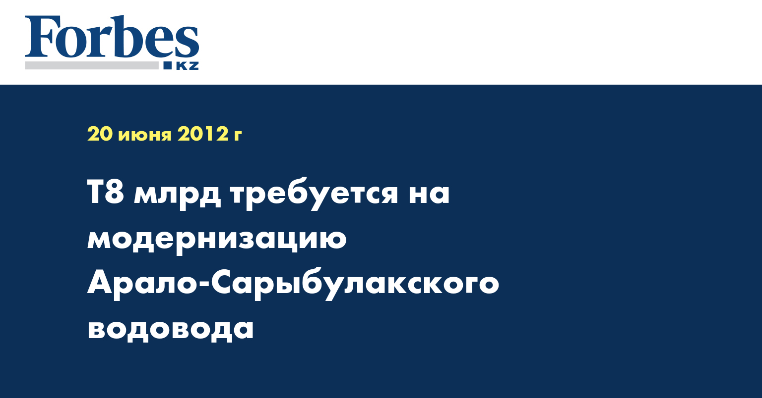 При этом он отметил, что на ликвидацию 50 аварийных участков водовода из бюджета области было выделено Т147 млн. Однако, по его мнению, это кардинально это не исправит ситуацию. По предварительным подсчетам, на модернизацию Арало-Сарыбулакского группового водовод понадобится порядка Т8 млрд.