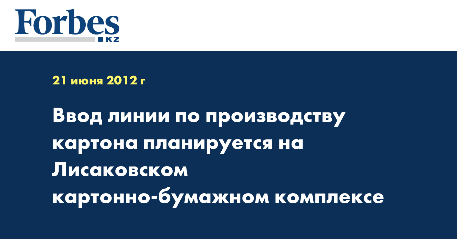 «Ввод в эксплуатацию второй линии – производство картона планируется во втором полугодии 2012 года», - сообщил финансовый директор ТОО «Лисаковский картонно-бумажный комплекс» Ануар Тулекпаев в четверг.