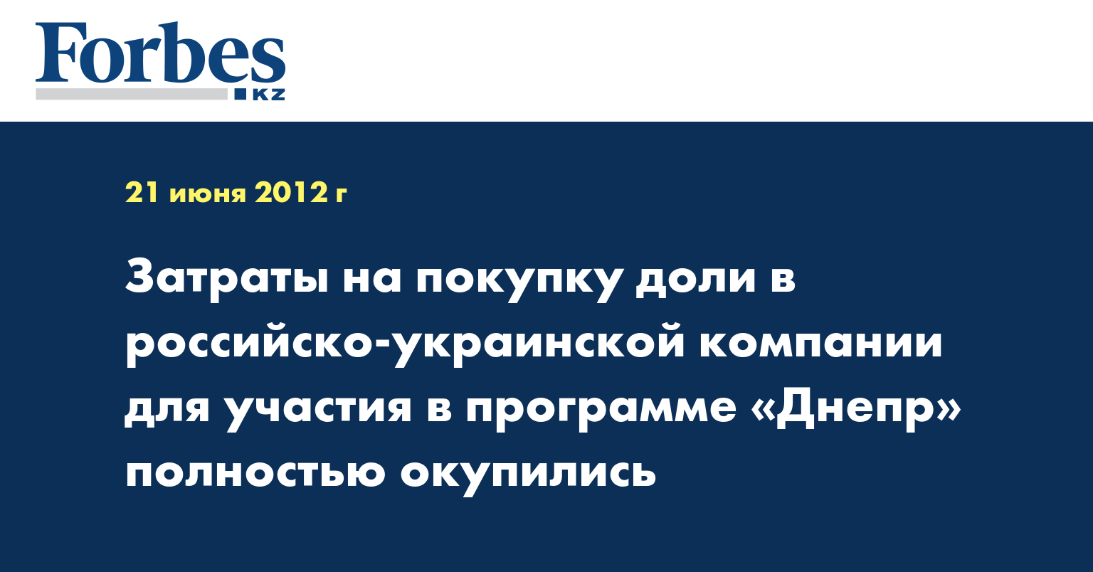 Затраты на покупку 10% доли в российско-украинской компании «Космотрас» для участия в программе «Днепр» полностью окупились, сообщил председатель национального космического агентства Талгат Мусабаев.