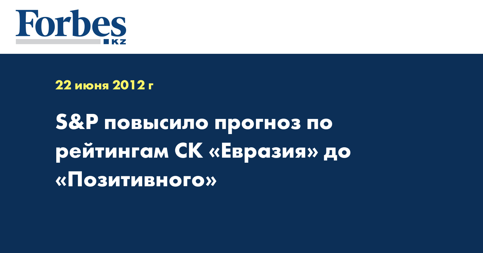Международное рейтинговое агентство Standard & Poor's пересмотрело прогноз по рейтингам крупнейшей казахстанской страховой компании «Евразия» со «Стабильного» на «Позитивный», сообщило агентство.