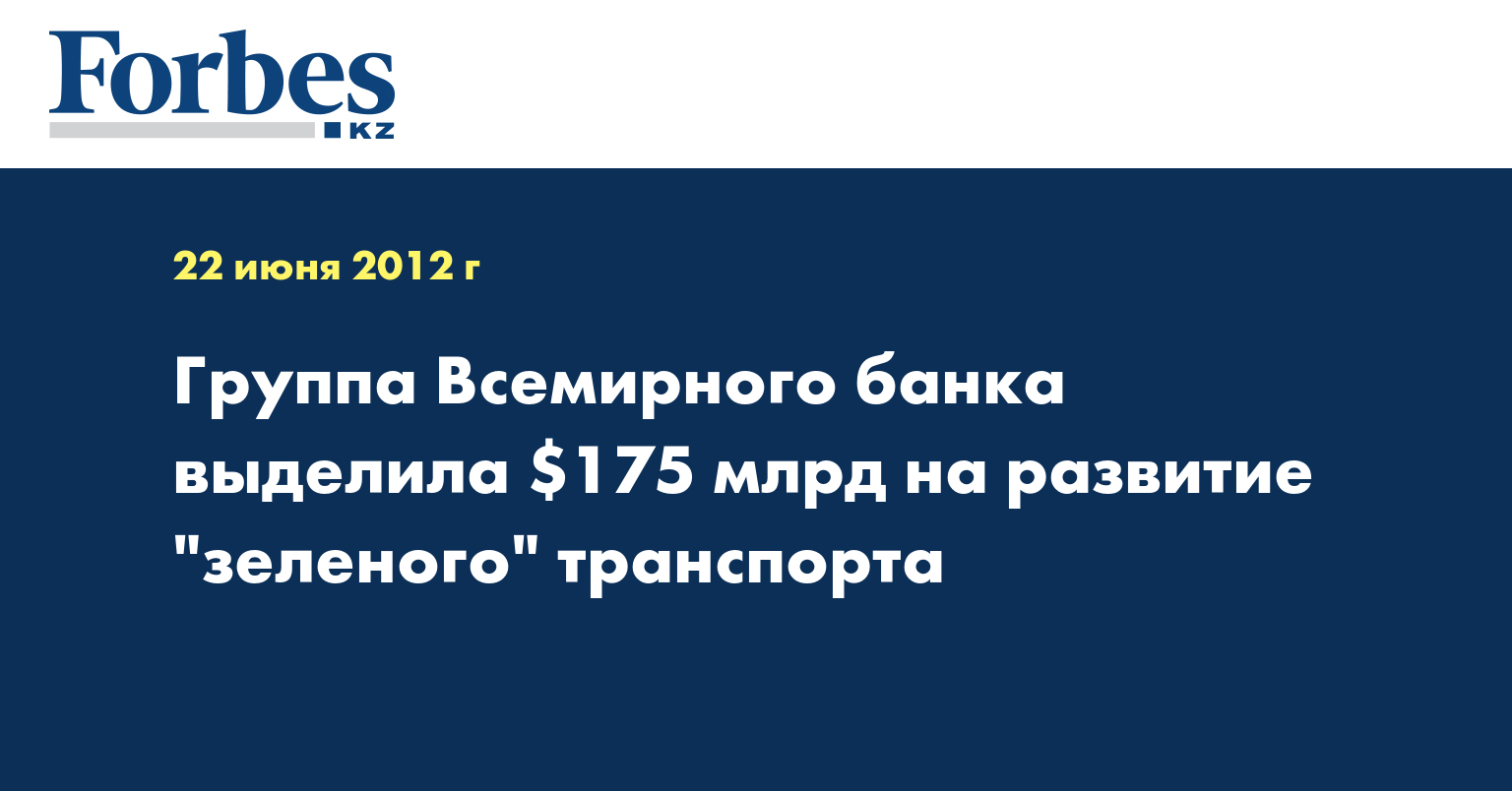 Всемирный банк, Азиатский банк развития и еще шесть региональных банков развития выделили более 175 миллиардов долларов в виде займов и грантов на проекты в сфере устойчивого развития транспорта в развивающихся странах, передает ИА Новости-Казахстан со ссылкой на РИА Новости и сообщение банков.