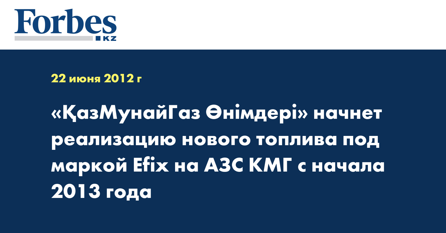 АО «ҚазМұнайГаз Өнімдері» планирует начать реализацию нового топлива под маркой Efix на автозаправочных станциях (АЗС) АО «Национальная компания «КазМунайГаз» (КМГ) с начала 2013 года, указывается в сообщении компании, передает КазТАГ.