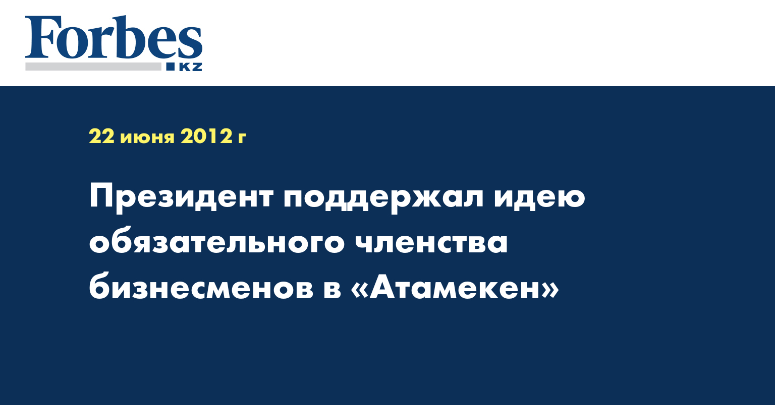 Президент Казахстана Нурсултан Назарбаев поддержал идею обязательного членства бизнесменов в национальной экономической палате Казахстана «Атамекен».