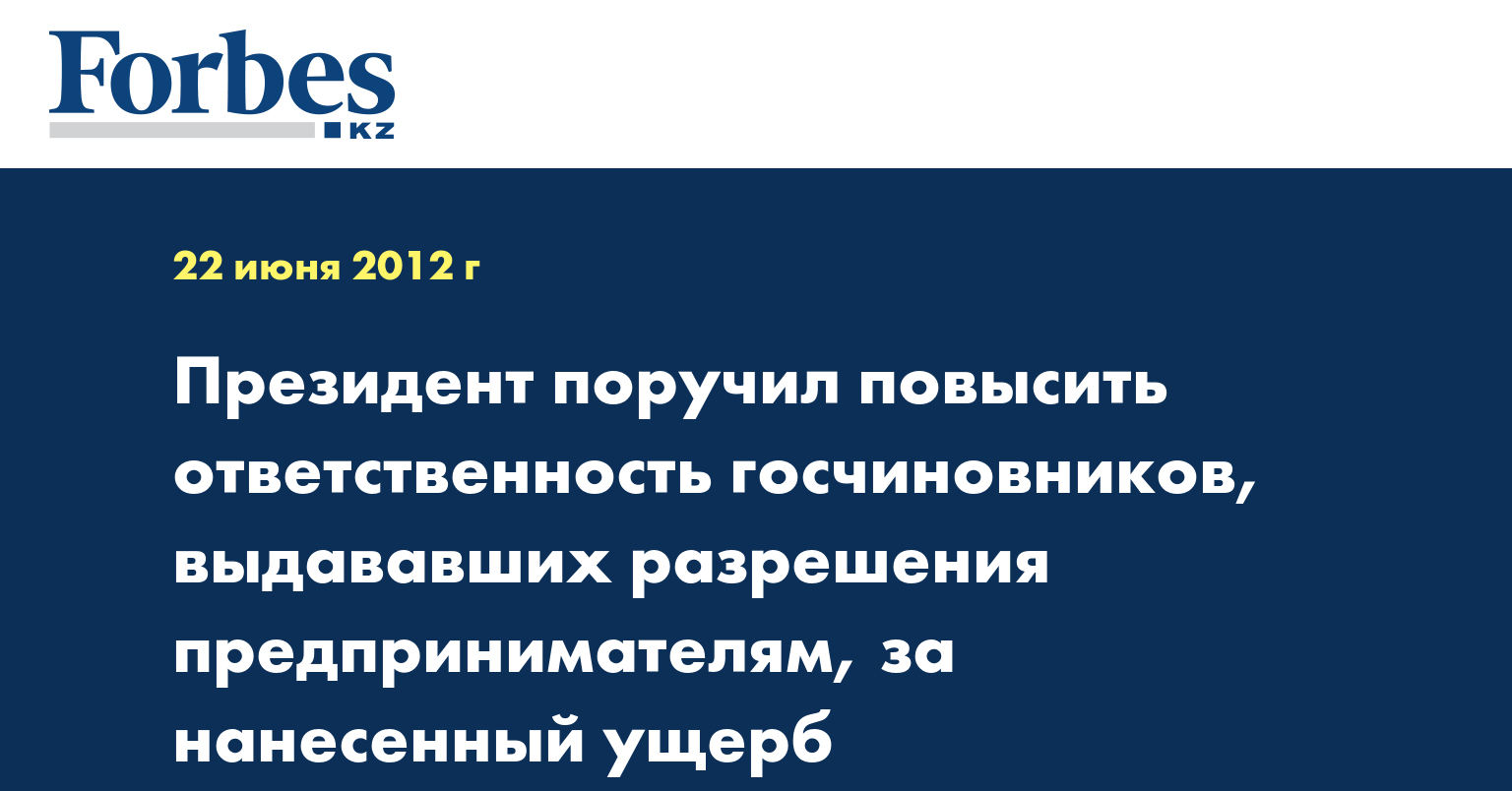 Повысить ответственность госчиновников, выдававших разрешения предпринимателям, за нанесенный бизнесменами ущерб потребителям, поручил президент РК Нурсултан Назарбаев.