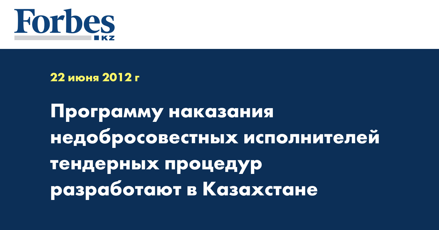 Агентство РК по борьбе с экономической и коррупционной преступностью (финансовая полиция) разработает программу наказания недобросовестных исполнителей тендерных процедур, сообщил премьер-министр РК Карим Масимов.