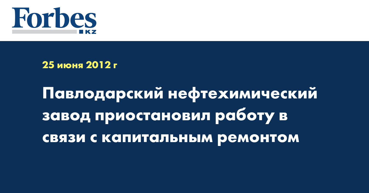 Павлодарский нефтехимический завод (ПНХЗ) на месяц приостановил работу в связи с капитальным ремонтом, сообщили на предприятии.
