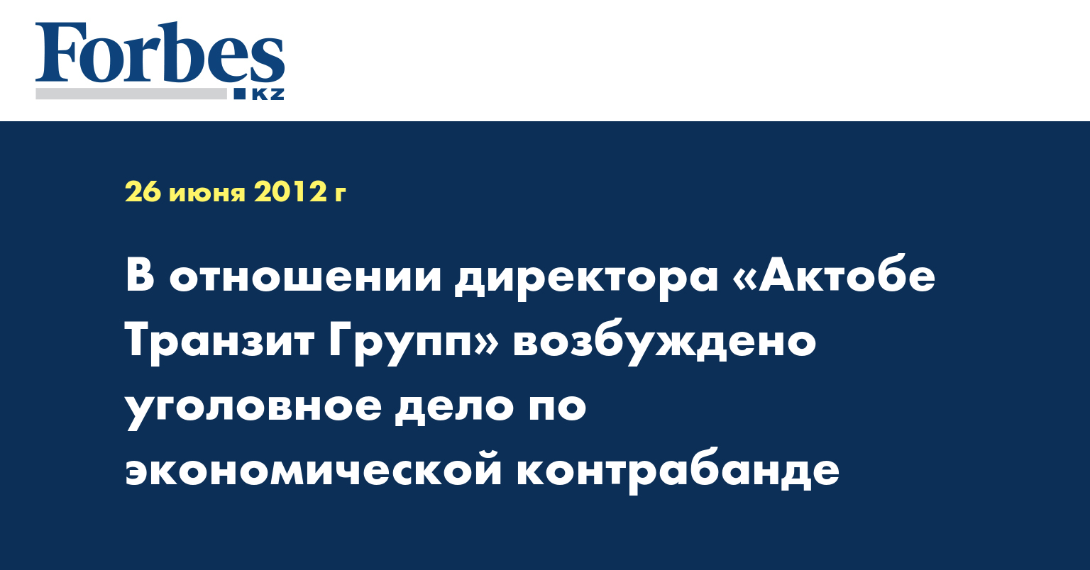 Уголовное дело по экономической контрабанде в особо крупном размере возбуждено в отношении директора ТОО «Актобе Транзит Групп», сообщили в департаменте таможенного контроля (ДТК) по Актюбинской области во вторник, передает КазТАГ.