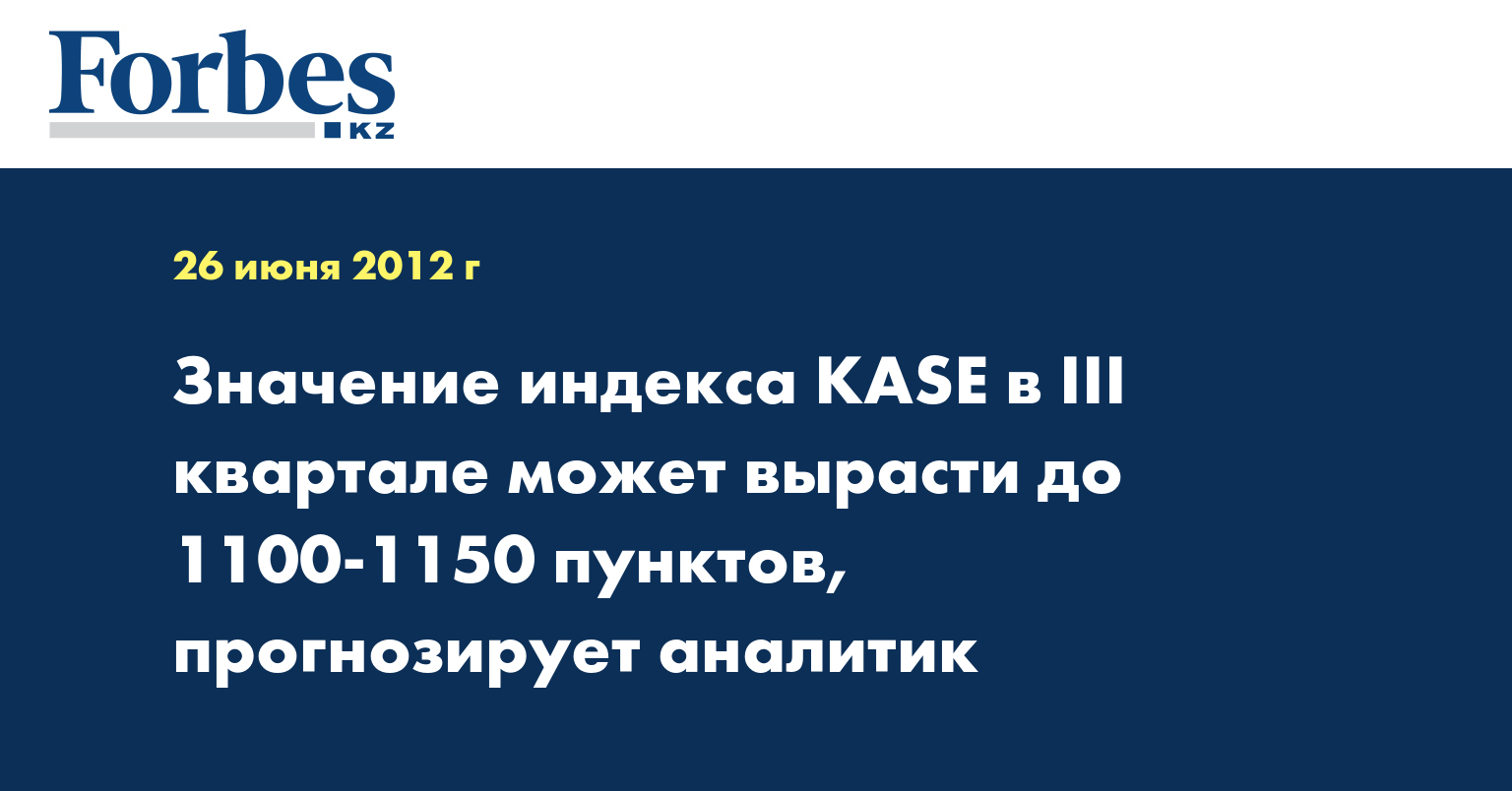 Значение индекса KASE в III квартале текущего года может вырасти до 1100-1150 пунктов, утверждает директор аналитического центра АО «Асыл-Инвест» Нурлан Рахимбаев, передает КазТАГ.