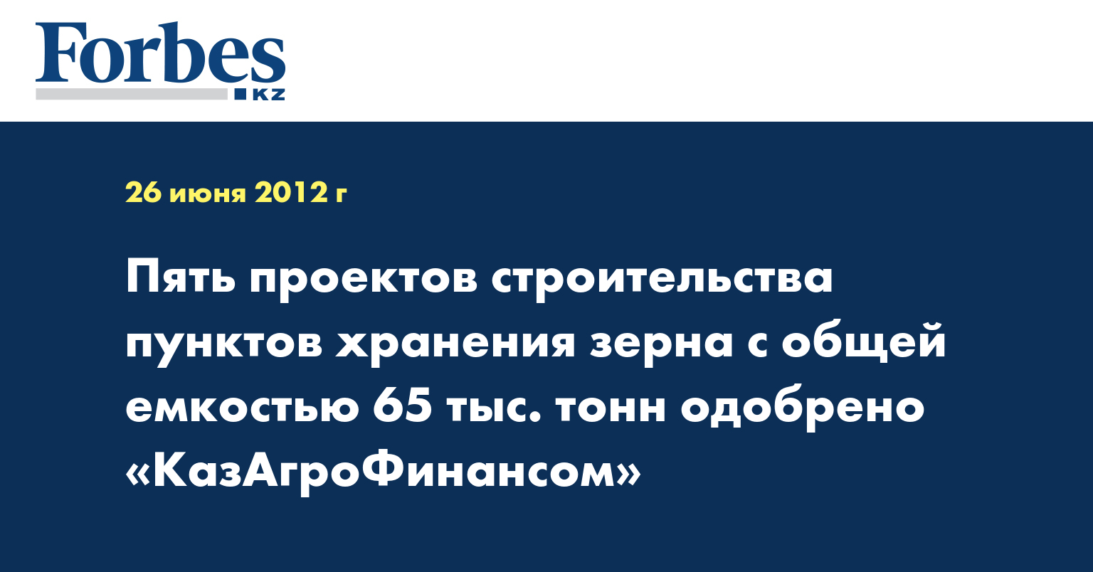 Пять проектов строительства пунктов хранения зерна с общей емкостью 65 тыс. тонн одобрено компанией «КазАгроФинанс», сообщила управляющий директор национального холдинга «КазАгро» Бакыт Кудасбаева, передает КазТАГ.