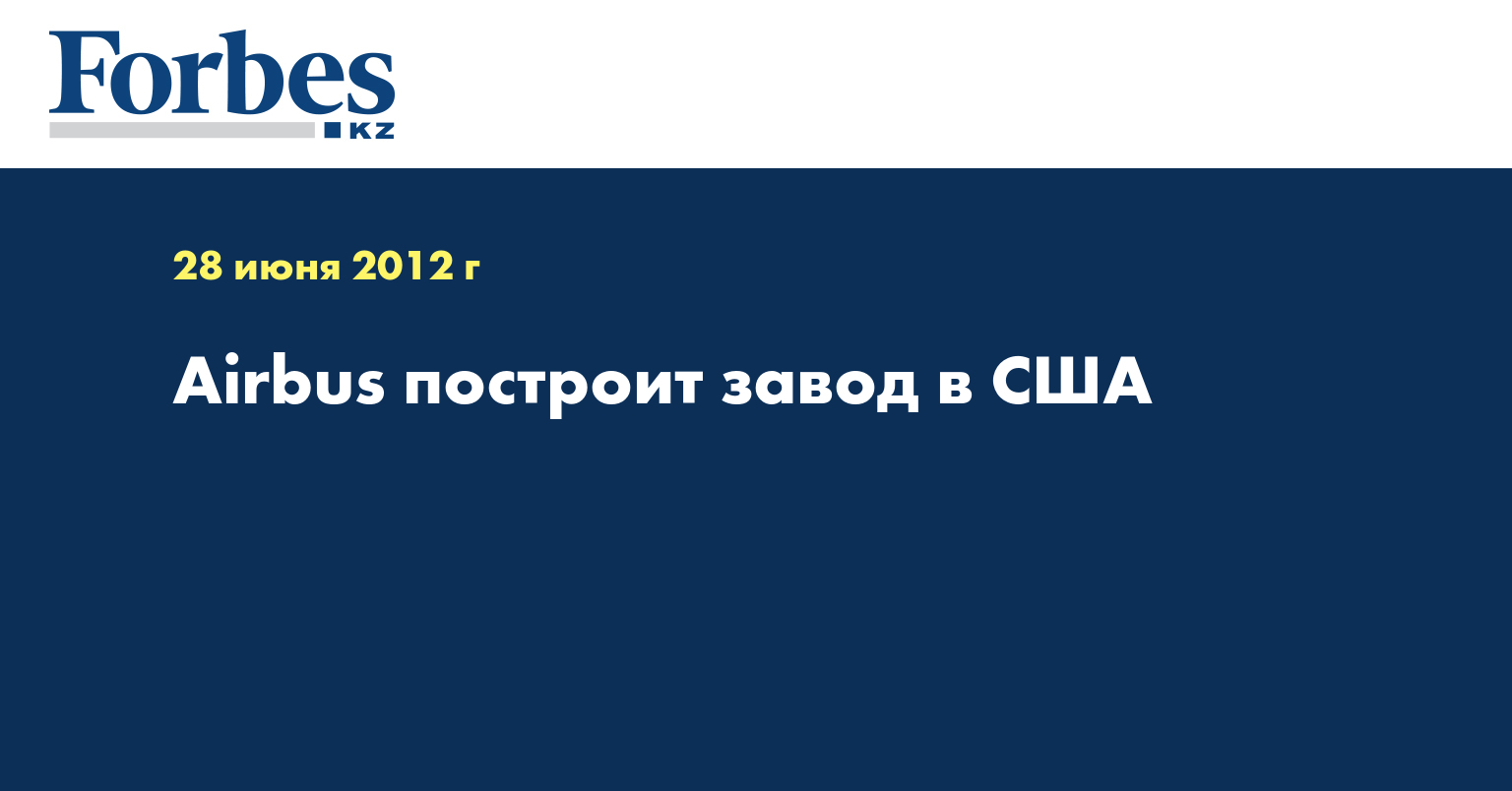 Европейский авиастроительный концерн Airbus в ближайшее время намерен построить первый завод по производству своих самолетов на территории США. Об этом 27 июня сообщает The New York Times, передает Lenta.ru.