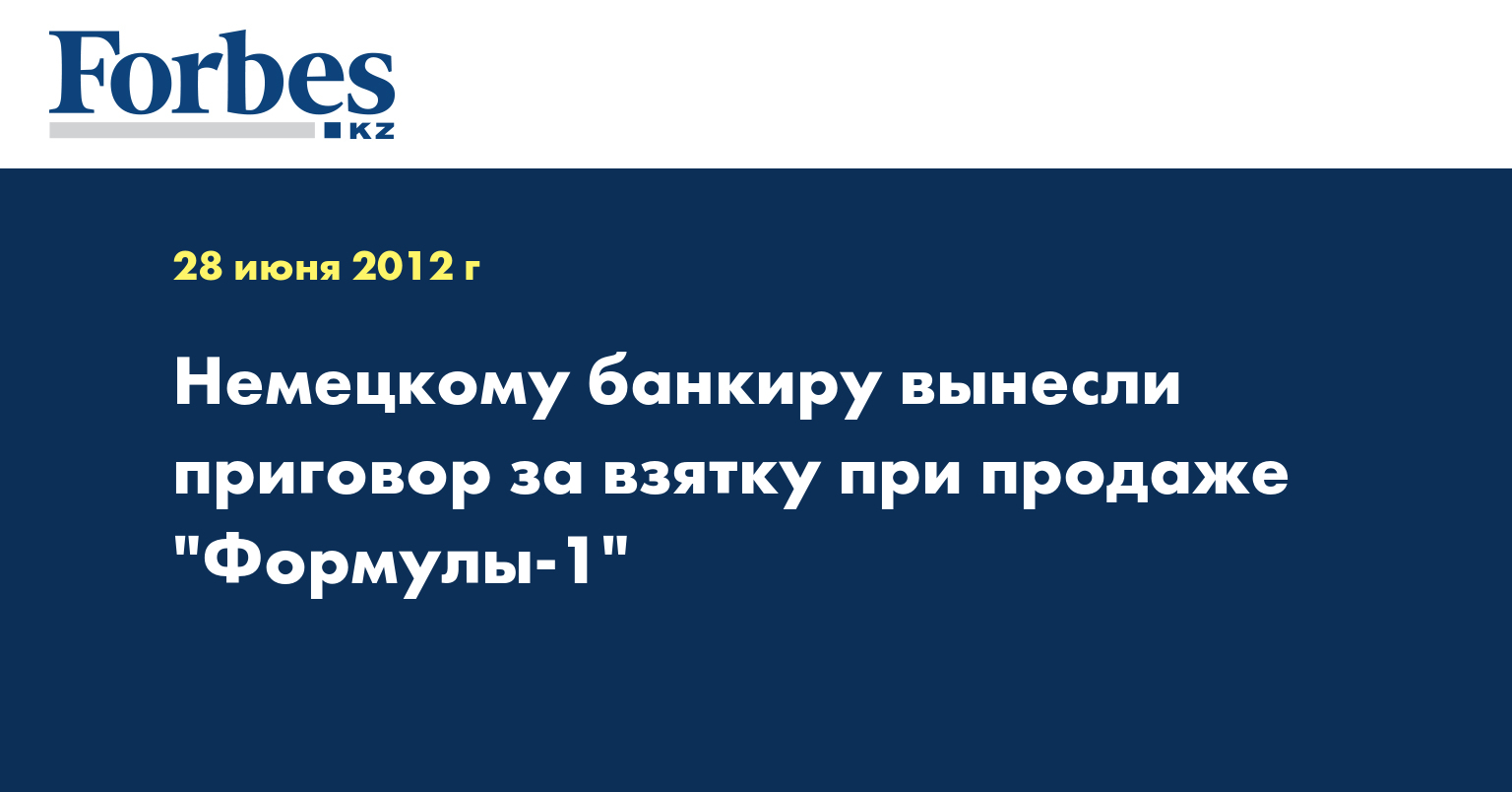 Бывший топ-менеджер немецкого банка BayernLB Герхард Грибковски (Gerhard Gribkowsky) приговорен к восьми с половиной годам лишения свободы за получение взятки от совладельца автогонок "Формулы-1" Берни Экклстоуна, пишет Spiegel со ссылкой на решение земельного суда Мюнхена. Ранее он сознался в получении 44 миллионов долларов за сделку по продаже акций "Формулы-1", передает Lenta.ru.