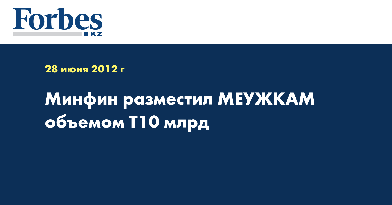 «Министерство финансов Казахстана разместило на KASE 28 июня 10 млн МЕУЖКАМ-204 шестого выпуска… с маржой 0,01% годовых над уровнем инфляции», - говорится в сообщении, опубликованном на сайте биржи в четверг.