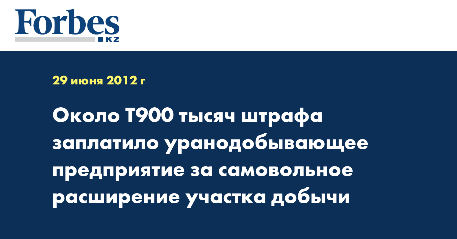 Уранодобывающее предприятие самовольно расширило участок добычи полезного ископаемого, за что было оштрафовано на Т889,9 тыс., сообщила пресс-секретарь прокуратуры Южно-Казахстанской области (ЮКО) Шагала Момынханкызы, передает КазТАГ.