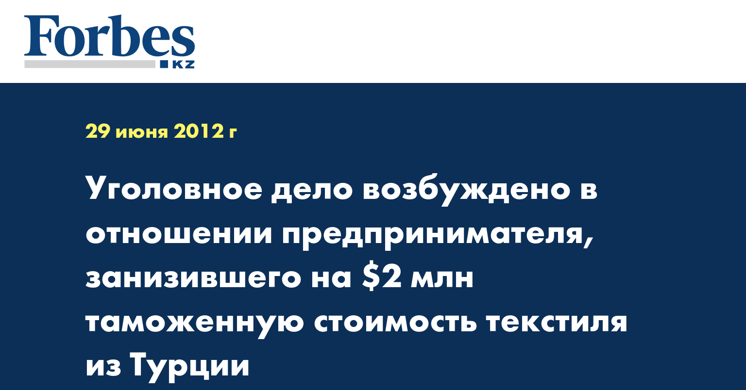 Изделия текстиля, ввезенные из Турции в 2010 году, заявлялись к таможенной очистке по 6 декларациям. Факт контрабанды был выявлен благодаря поступишей информации и сверке деклараций. Таможенники обнаружили существенное расхождение в заявленной таможенной стоимости, а также несоответствие данных в инвойсах, сопоставив экспортные декларации, оформленные предпринимателем в Турции и департаменте таможенного контроля по Алматы.