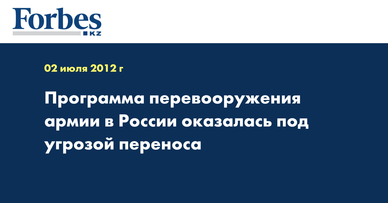 Госпрограмма вооружений на 2011-2020 годы была утверждена бывшим президентом России Дмитрием Медведевым в декабре 2010 года. Общий объем финансирования программы определен на уровне 20 триллионов рублей плюс еще три триллиона рублей на модернизацию оборонно-промышленного комплекса России. Как отмечает газета, в случае, если будет решение о переносе исполнения программы на три года, не ясно, как будут сокращаться оборонные расходы до 2016 года.