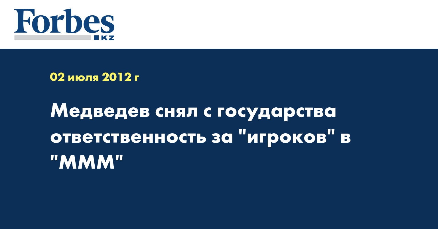 "Нельзя в МММ играть три раза подряд... Почему за это государство должно отвечать?" - сказал Медведев, добавив, что если кто-то "играет" в "МММ", значит, "у него с грамотностью тяжело".