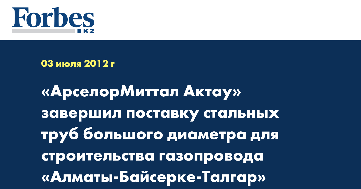 При этом сообщается, что «АрселорМиттал Актау» участвует в тендере на поставку труб для следующего этапа программы - строительства магистрального газопровода «Алматы-Талдыкорган» протяженностью около 268 км или 30,000 тонн стальных труб с 3-х слойным антикоррозионным покрытием.