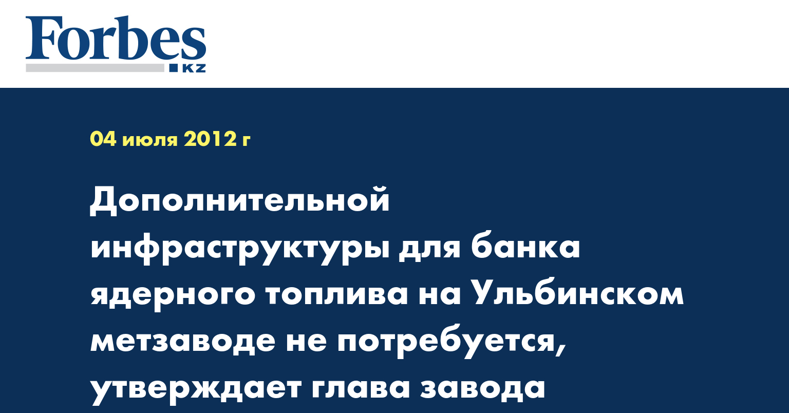 Для размещения банка низкообогащенного урана (НОУ) на территории Ульбинского металлургического завода (УМЗ) не понадобится строить дополнительную инфраструктуру, сообщил председатель правления АО «УМЗ» Юрий Шахворостов, передает КазТАГ.