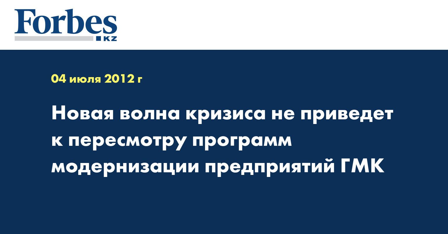 Возможная новая волна экономического кризиса не приведет к пересмотру программ модернизации предприятий горнометаллургического комплекса, заявил первый вице-министр инустрии и новых технологий Альберт Рау.