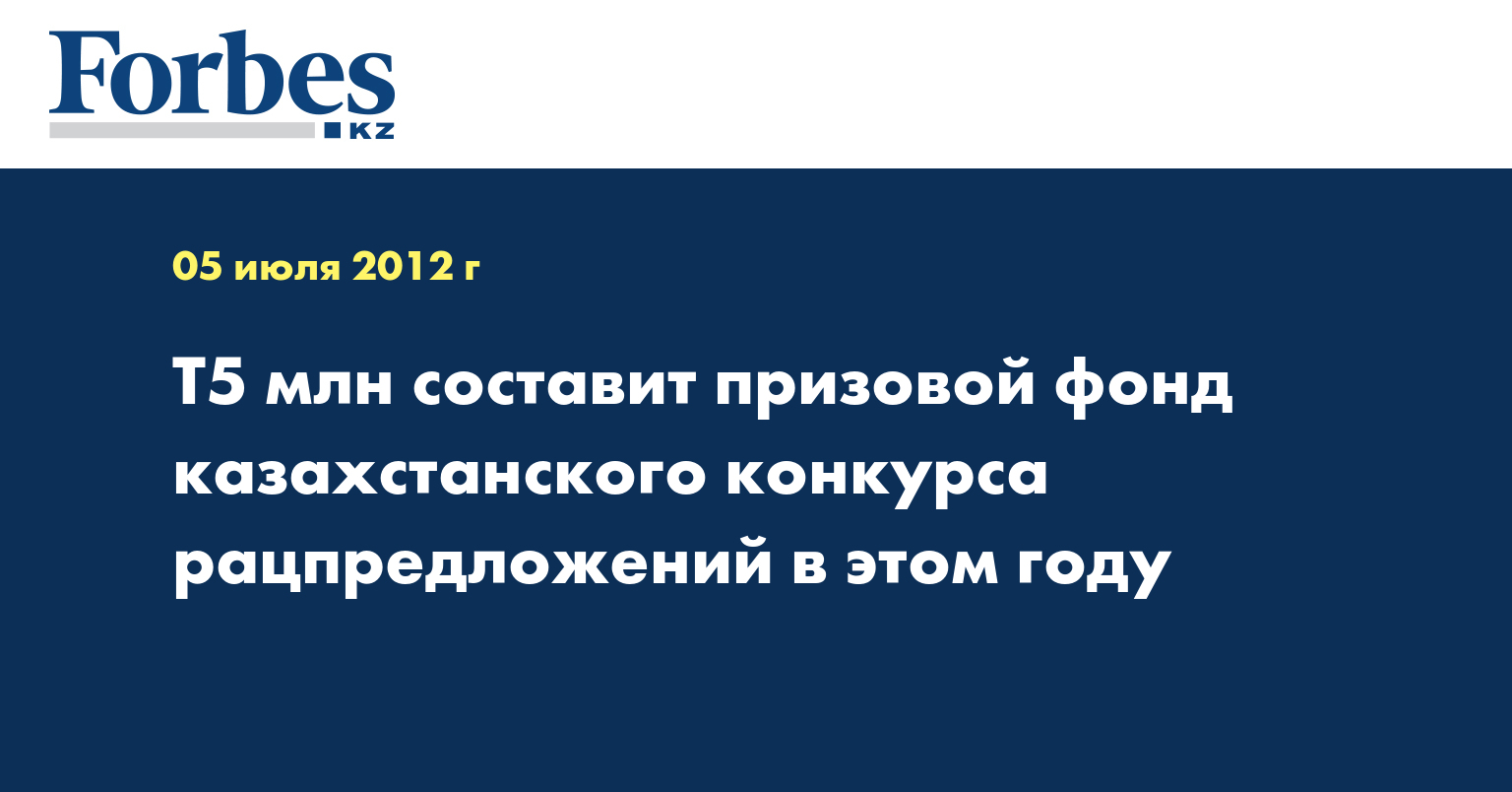 Т5 млн составит призовой фонд республиканского конкурса рационализаторских предложений в этом году, сообщила пресс-служба АО «Национальное агентство по технологическому развитию» (НАТР), сообщает КазТАГ.
