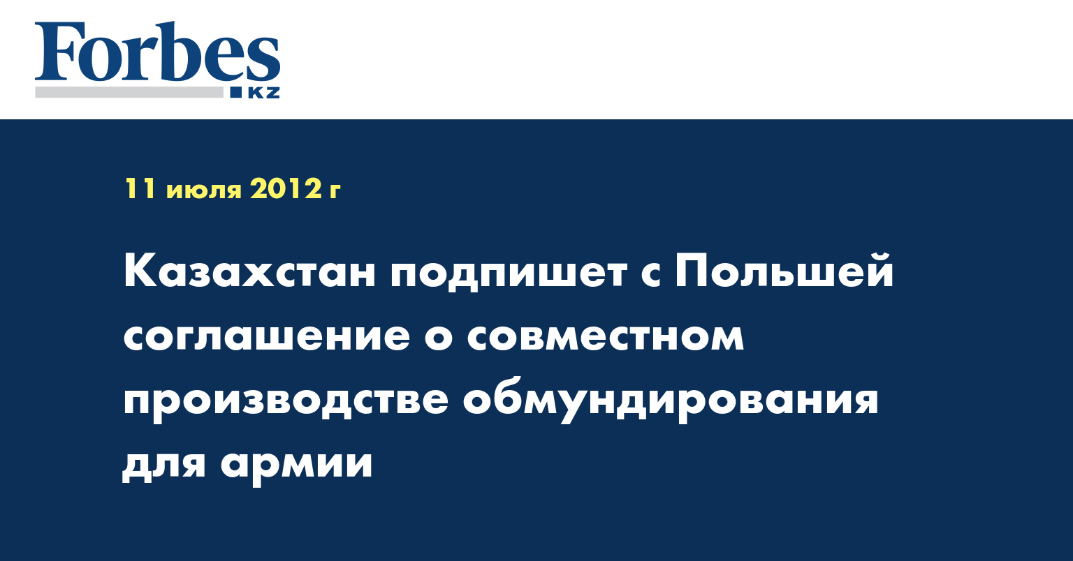 Генеральное соглашение о совместной деятельности по производству средств индивидуальной защиты и обмундирования для Вооруженных сил РК будет подписано с Польшей на этой неделе, сообщила пресс-служба национальной компании «Казахстан инжиниринг».