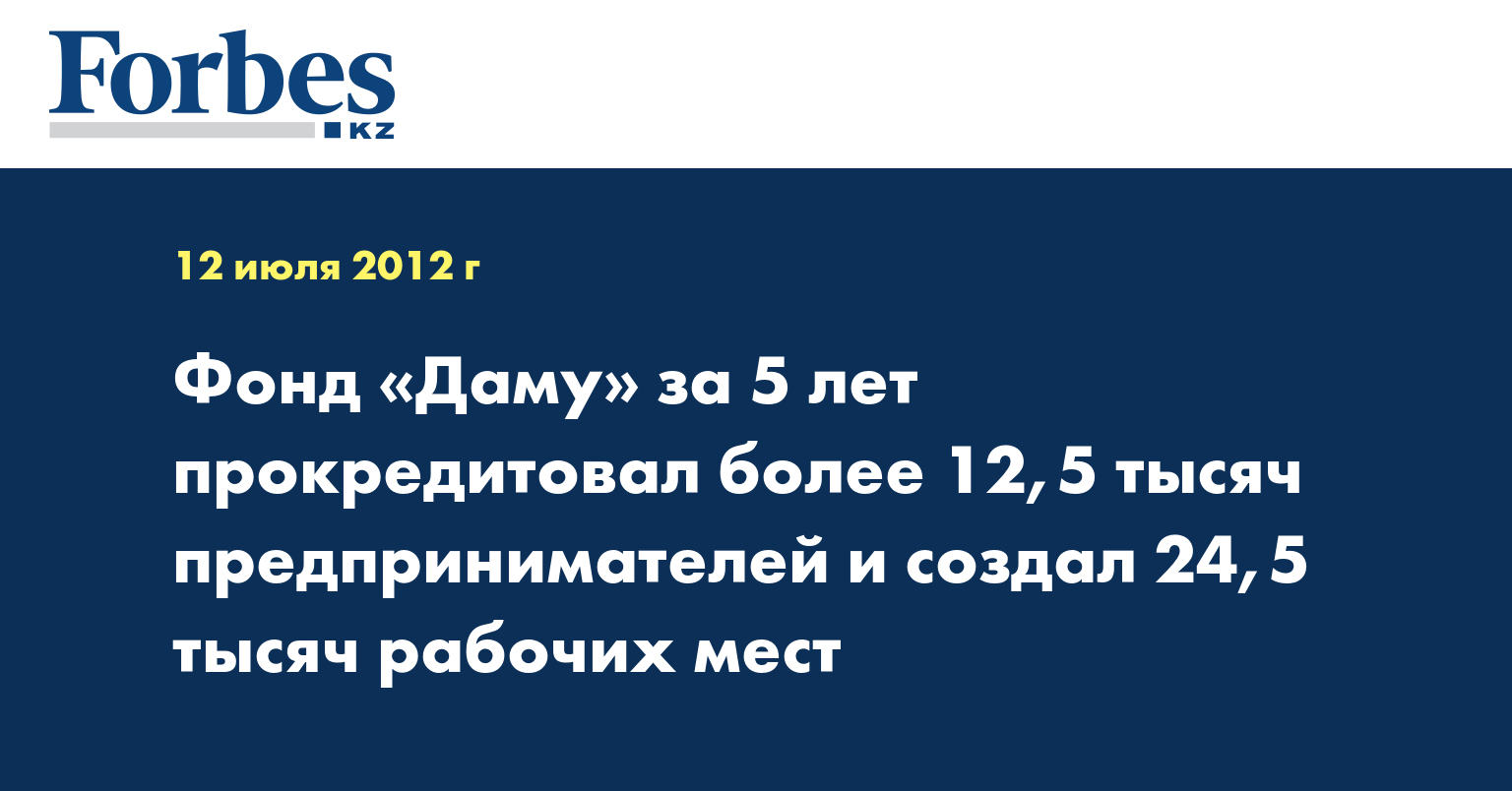 По данным пресс-службы, с 2007 года фондом «Даму» в рамках программ финансовой поддержки субъектов частного предпринимательства размещены в 16 банках-партнерах и 4 лизинговых компаниях средства в размере Т311,06 млрд.