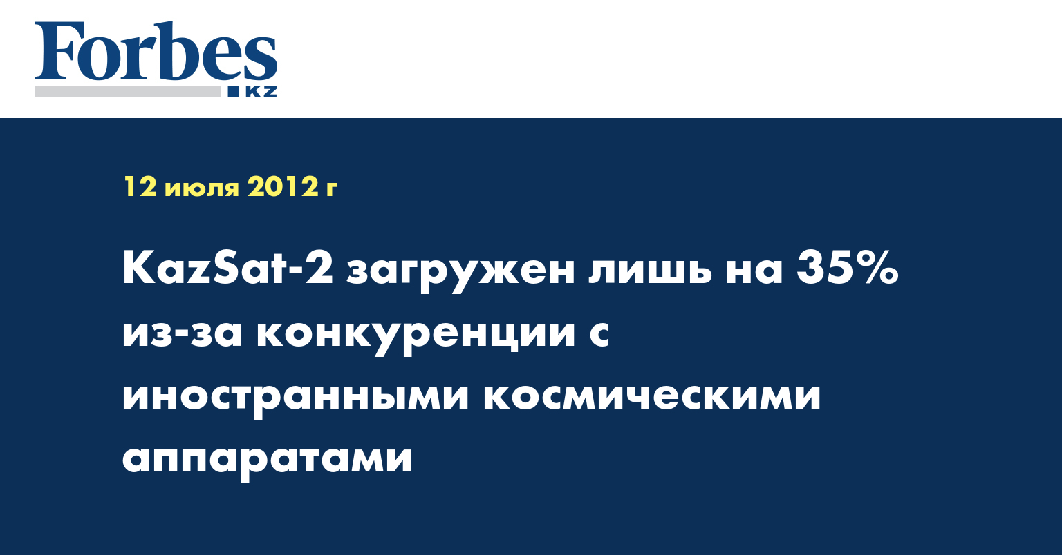 «К сожалению, в настоящее время космический аппарат загружен всего на 35 процентов и многие казахстанские операторы связи до сих пор продолжают арендовать спутниковую транспондерную емкость на иностранных космических аппаратах при наличии отечественного», - говорится в письменном ответе центра, полученном по запросу КазТАГ в четверг.