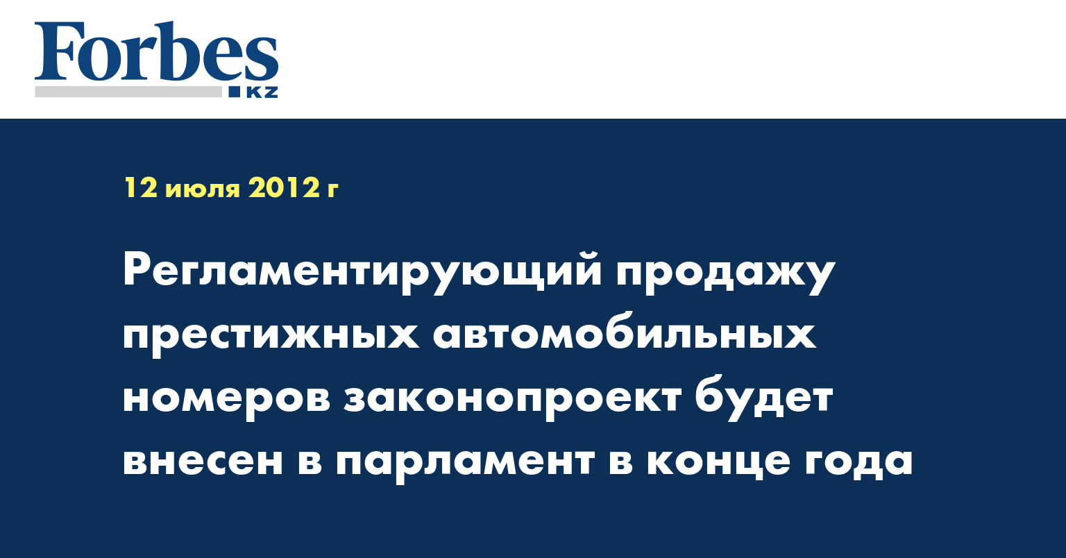 Законопроект, регламентирующий продажу престижных автомобильных государственных номерных знаков, уже разработан и будет внесен в парламент в конце этого года, сообщила пресс-служба комитета дорожной полиции министерства внутренних дел РК.