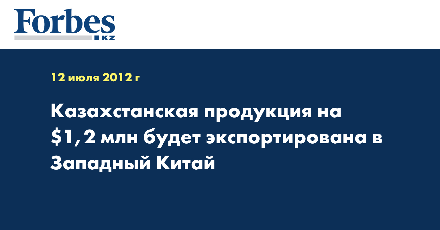 Казахстанская продукция на $1,2 млн будет экспортирована в Западный Китай, сообщила пресс-служба АО «Национальное агентство по экспорту и инвестициям «Kaznex Invest».