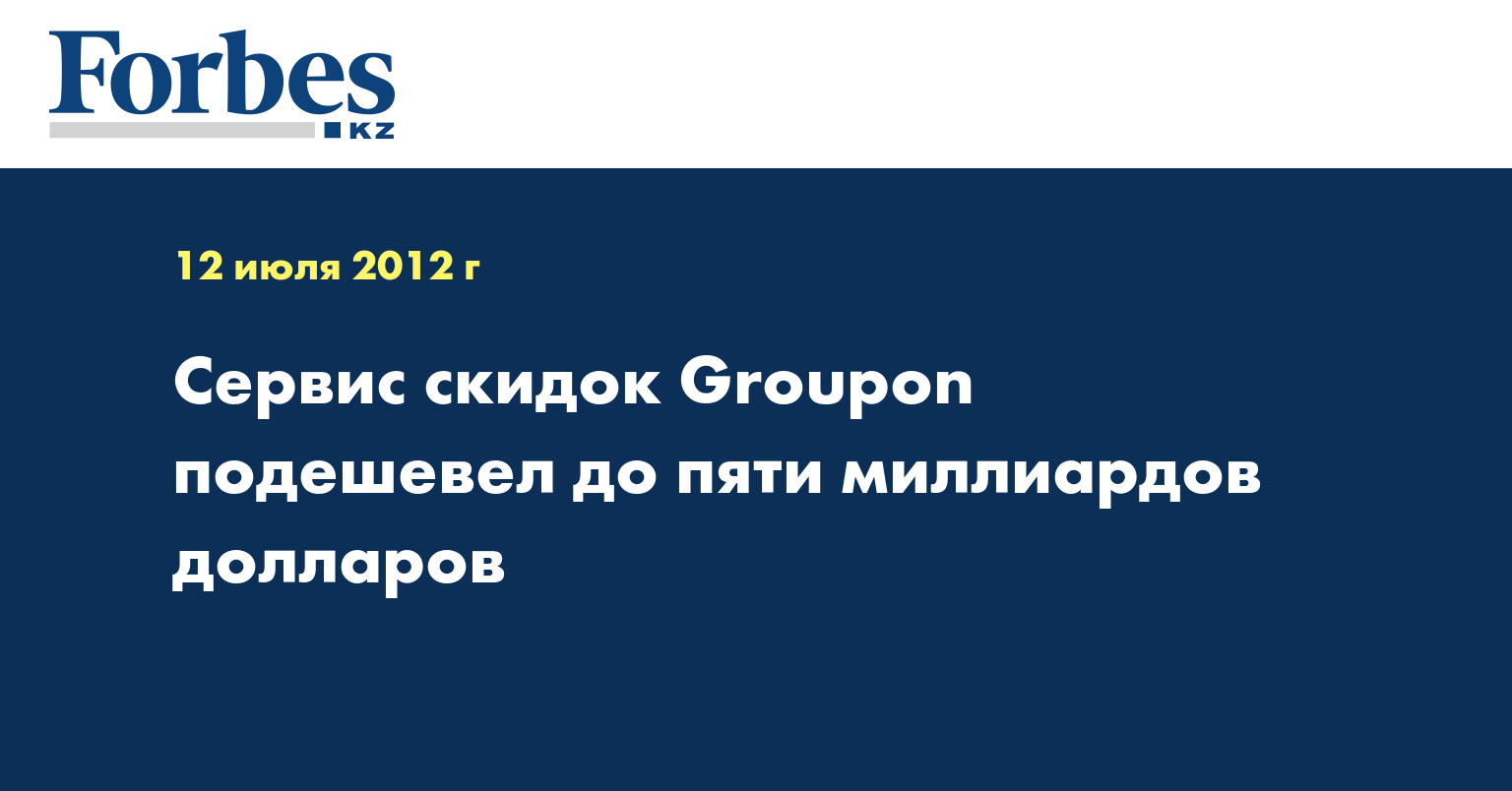 Акции Groupon на торгах 11 июля подешевели на 6,5 процента до 7,7 доллара. Капитализация компании снизилась до 5 миллиардов долларов, тогда как по итогам первых торгов в ноябре показатель составлял 16,5 миллиарда долларов.