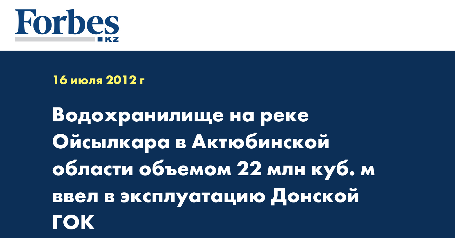 АО «Донской горно-обогатительный комбинат (ГОК)» ввел в эксплуатацию водохранилище на реке Ойсылкара в Актюбинской области проектным объемом 22 млн куб. м, сообщил корреспондент КазТАГ.