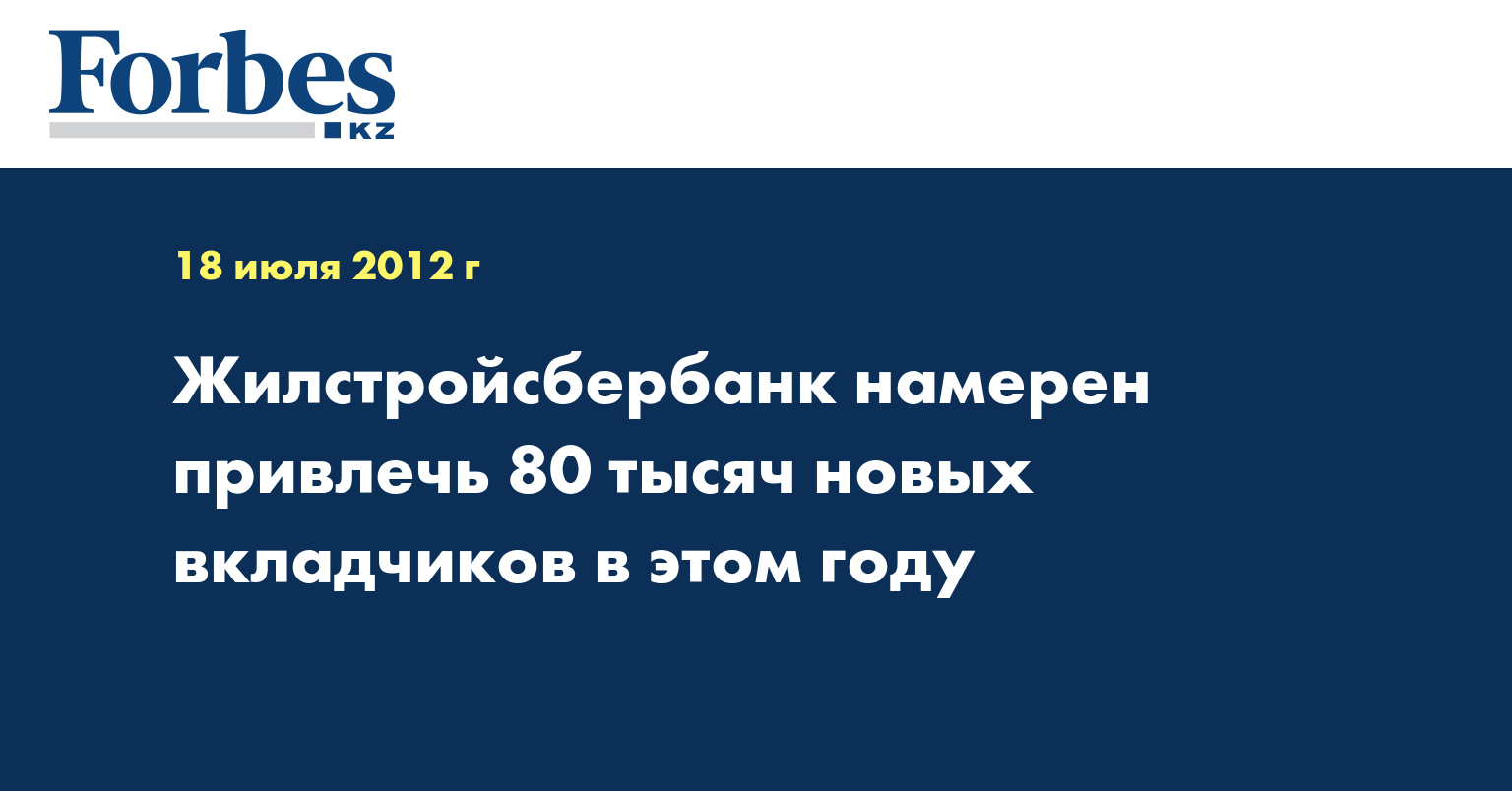 80 тыс. новых вкладчиков планирует привлечь в текущем году АО «Жилстройсбербанк Казахстана» (ЖССБ) при агентстве РК по делам строительства и ЖКХ, сообщила пресс-служба банка.