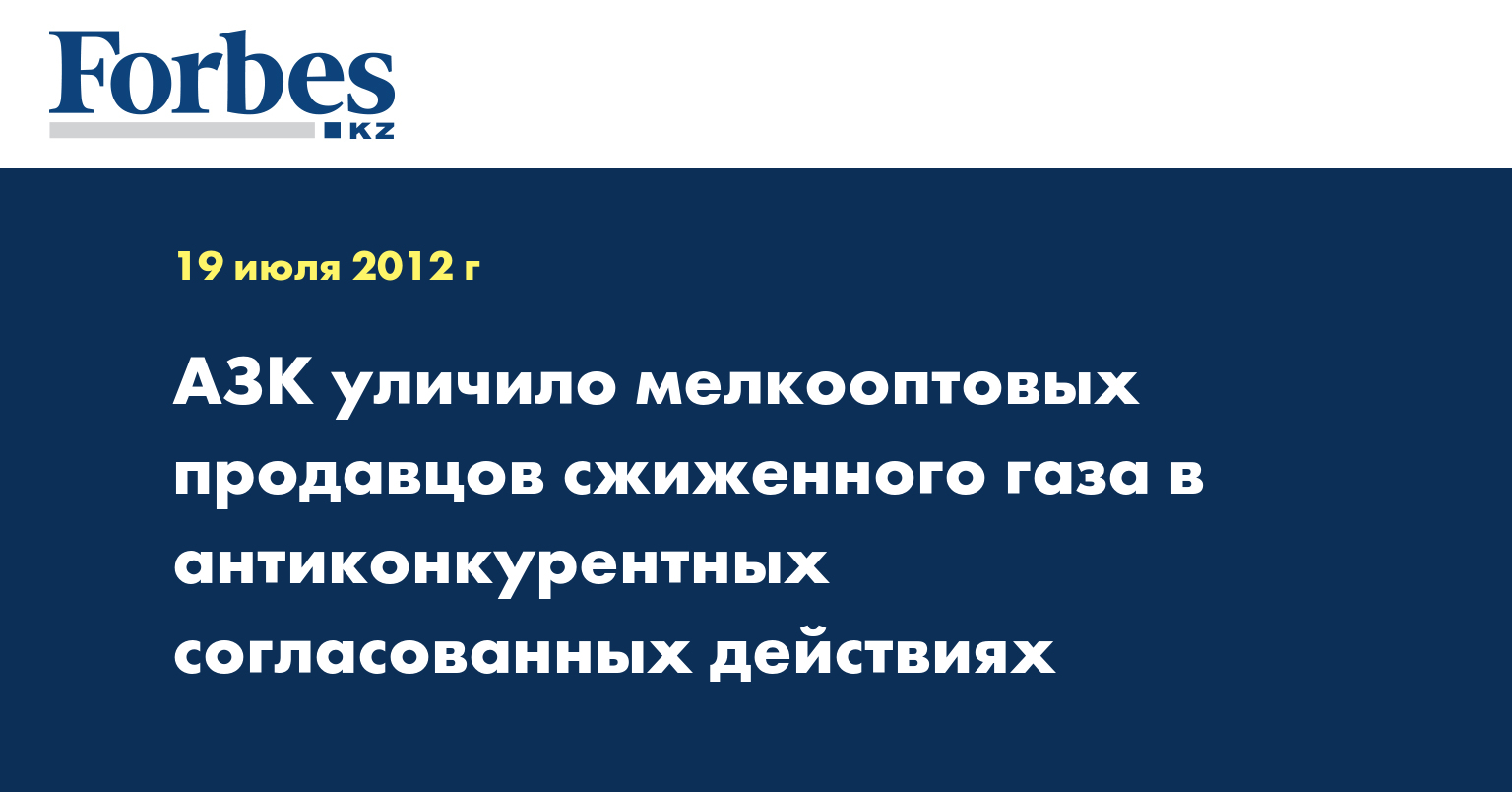 «На заседании методического совета АЗК рассмотрены итоги предварительного рассмотрения сведений о нарушениях антимонопольного законодательства в отношении ряда индивидуальных предпринимателей, мелкооптовых реализаторов сжиженного углеводородного газа (СУВГ). В действиях указанных субъектов рынка усмотрены признаки антиконкурентных согласованных действий, в части установления и поддержания цен на СУВГ (пп.1) п.1 ст.11 закона РК «О конкуренции»)», - говорится в сообщении, опубликованном на сайте АЗК.