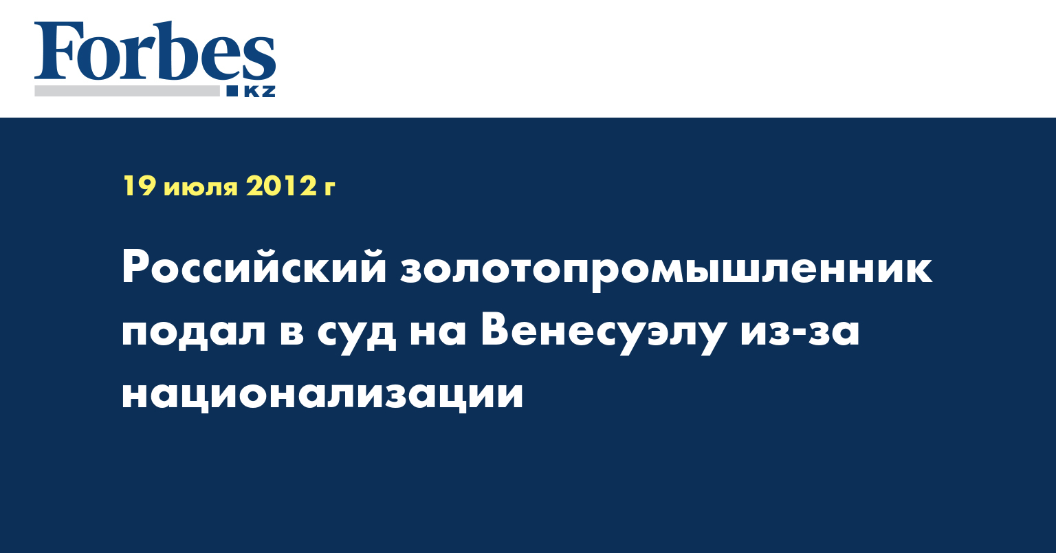 Гендиректор Rusoro Андрей Агапов - сын основателя компании - рассказывал, что у его отца были хорошие отношения с Чавесом. В 2010 году Rusoro добыла в этой стране 150 тысяч унций золота, в 2011 году - 80 тысяч. Закон о национализации вступил в силу в сентябре 2011 года.