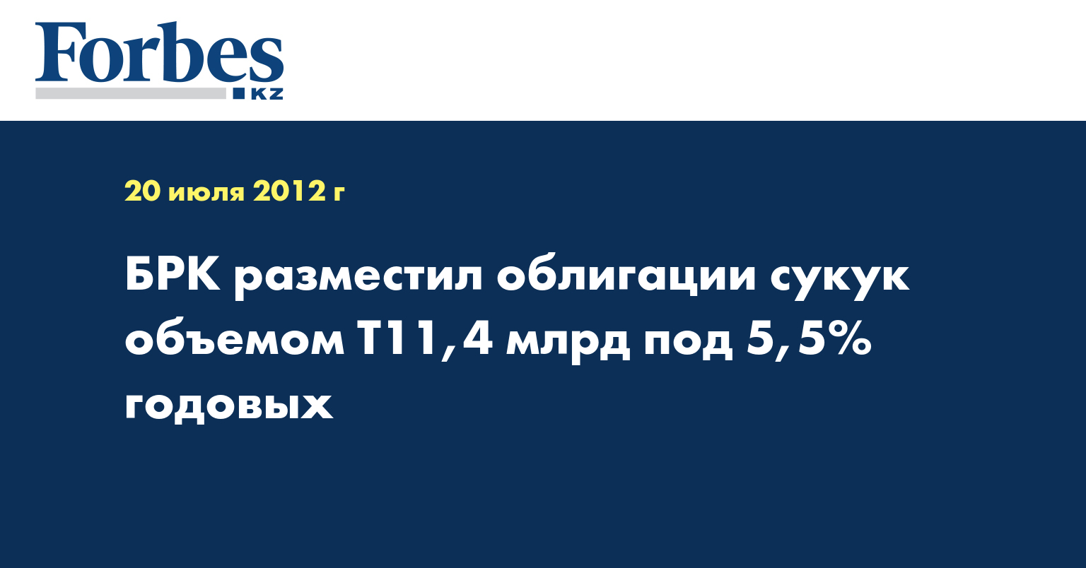 АО «Банк развития Казахстана» (БРК) разместило облигации сукук объемом Т11,378 млрд под 5,5% годовых, говорится в сообщении АО «Halyk Finance», передает КазТАГ.