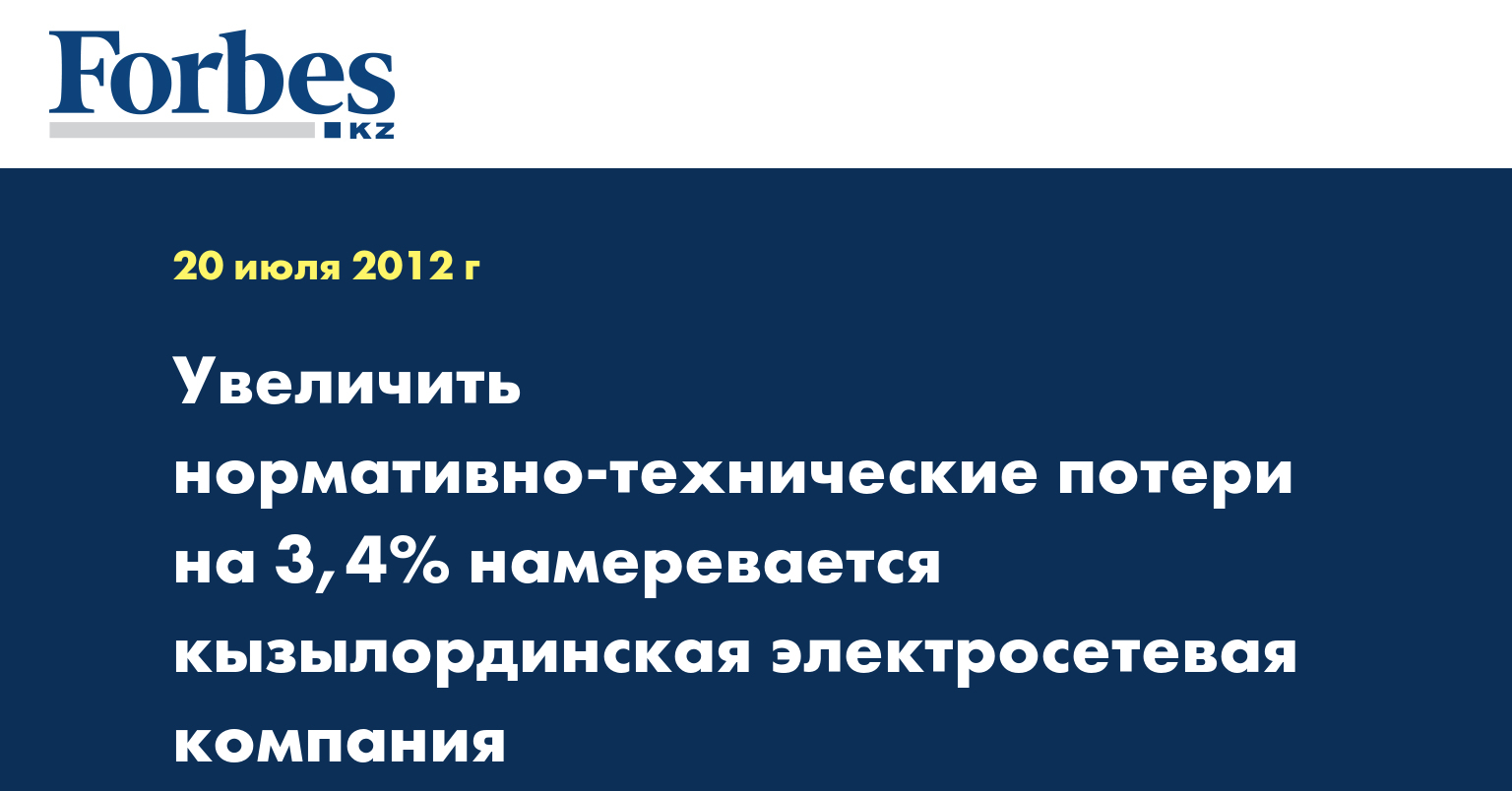«Согласно заявке, нормативно-технические потери электроэнергии на 2013-2015 годы в акционерном обществе «КРЭК» определены в размере от 148 166,5 до 150 375,8 тыс. кВт/ч, что почти на 3,4% больше действующей нормы - 16,1%», - цитирует пресс-служба директора департамента агентства РК по регулированию естественных монополий (АРЕМ) по Кызылординской области Нурлана Примова.