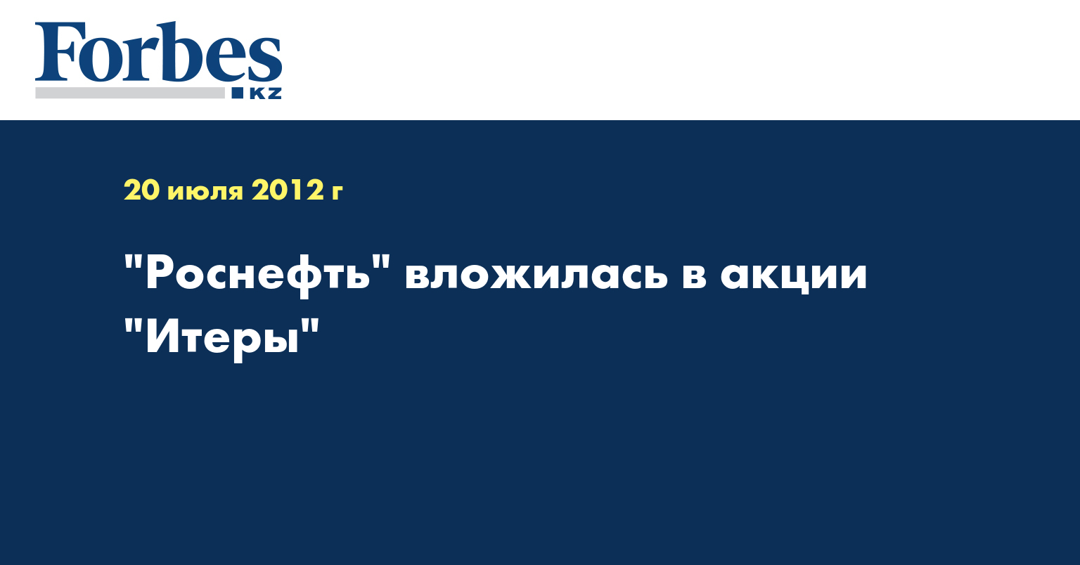 Как отмечается в сообщении "Роснефти", приобретение доли в капитале "Итеры" произошло 4 июля текущего года. Сумма сделки не сообщается.