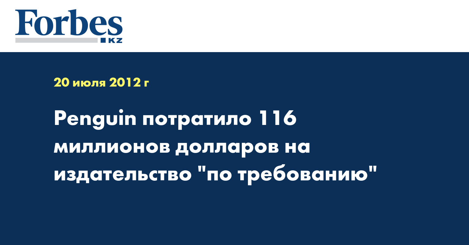 Издательство Penguin стало новым владельцем компании Author Solutions Inc., которая выпускает книги по технологии "печать по требованию" (print-on-demand, POD). Об этом говорится в официальном пресс-релизе британской Pearson Group, которой принадлежит Penguin, сообщает Lenta.ru.