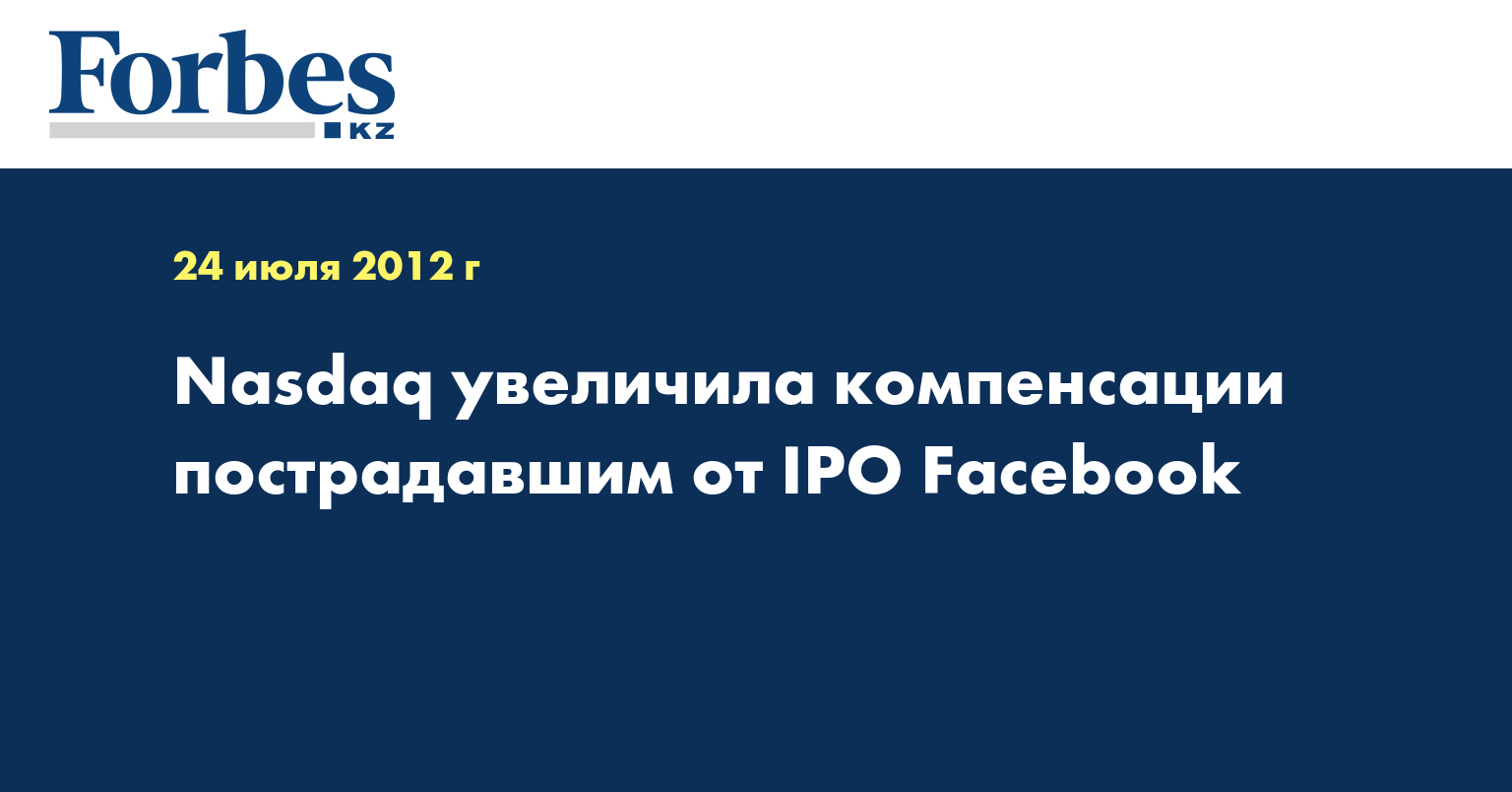 Американская биржа приняла решение выплачивать компенсации участникам размещения Facebook, так как в ходе торгов 18 мая, в день IPO, на ней произошел сбой. Он длился около получаса и привел к тому, что ряд заявок трейдеров содержали ошибки. Суммарный ущерб инвесторов, по различным оценкам, составил до 200 миллионов долларов.