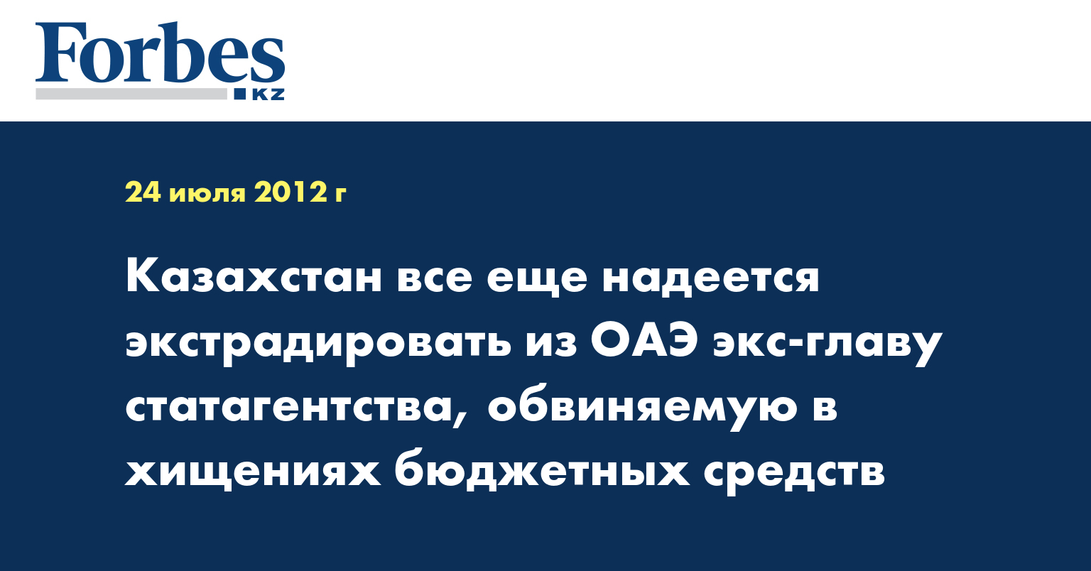 «Мы направили напоминание в Арабские Эмираты. Они думают. В другом государстве мы командовать не можем», - сказал он в кулуларах правительства во вторник, отвечая на вопрос, на какой стадии находится эстрадиция главы статагентства А. Мешимбаевой.