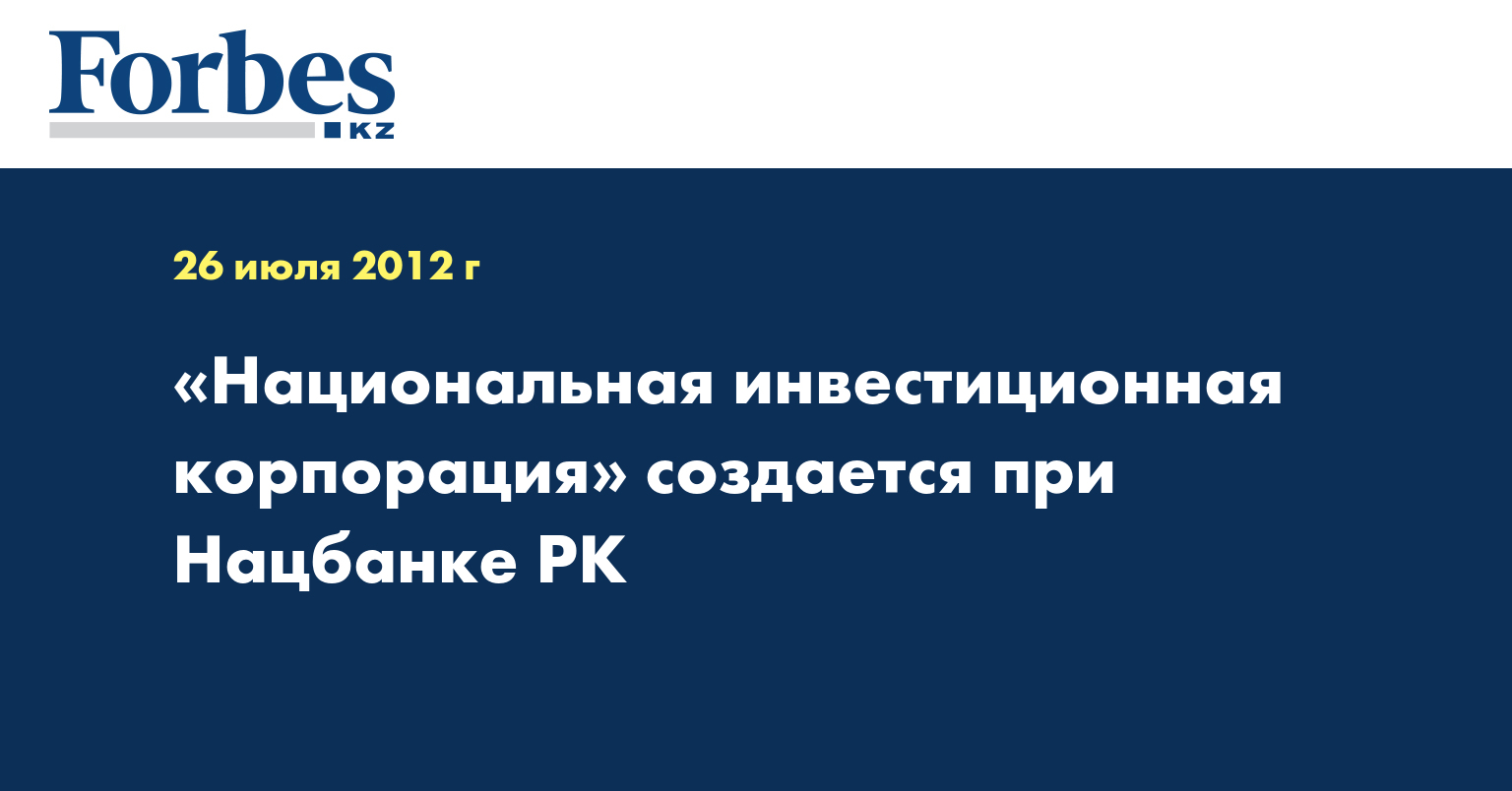В Казахстане создается АО «Национальная инвестиционная корпорация Национального банка Казахстана» (НИК НБК), сообщил председатель Нацбанка Григорий Марченко.