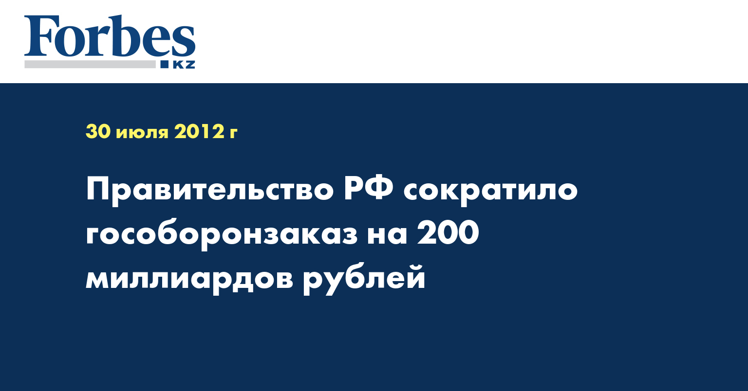 В ходе обсуждения в правительстве России бюджета на 2013 год достигнута окончательная договоренность с Минобороны о сокращении финансирования гособоронзаказа на 200 миллиардов рублей. Об этом в понедельник, 30 июля, сообщается на сайте газеты "Ведомости", передает Lenta.ru.