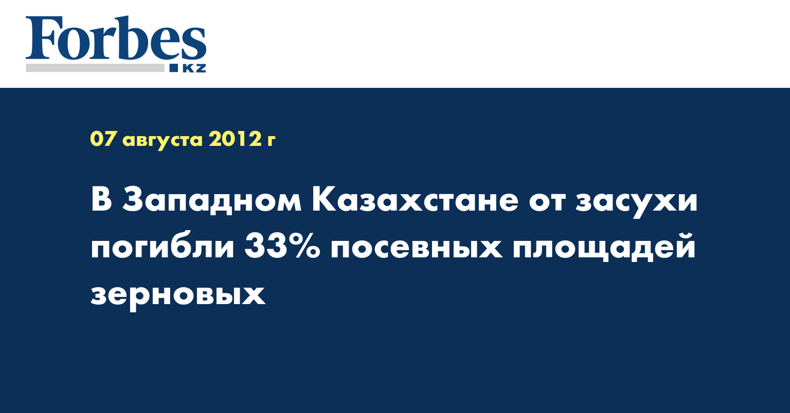В Западно-Казахстанской области от засухи, по предварительным данным, погибли 33% посевных площадей (137 тыс. га зерновых культур), сообщил аким ЗКО Нурлан Ногаев.
