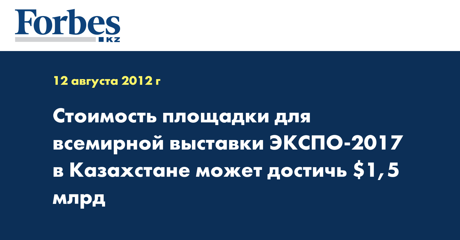 "Приблизительно у нас полтора миллиарда долларов предварительная оценочная стоимость", - сказала Бейсеева, отметив, что точные "масштабы расходов" на строительство объектов ЭКСПО-2017 пока не ясны.
