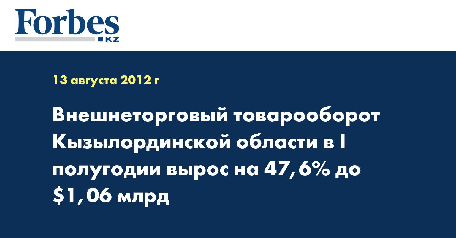 Внешнеторговый товарооборот Кызылординской области в I полугодии вырос на 47,6% до $1,059 млрд, сообщила главный специалист департамента таможенного контроля (ДТК) по Кызылординской области Бахыт Орданова, передает КазТАГ.